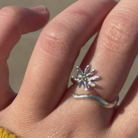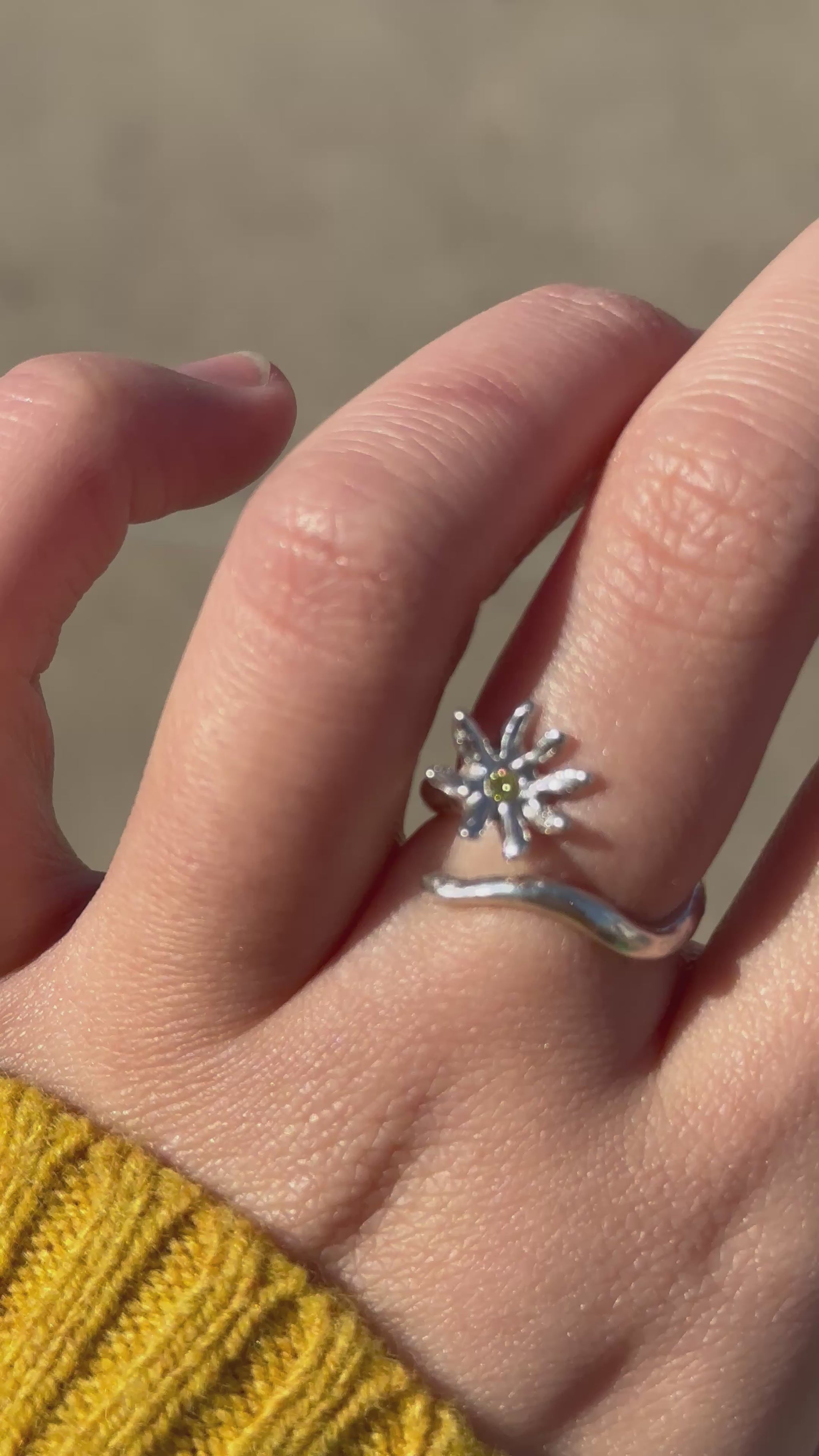 Cast in 925 sterling silver and set with a natural 2 mm diamond. Please note that the Daisy Diamond Ring requires 7 days to complete and is not available for express shipping.