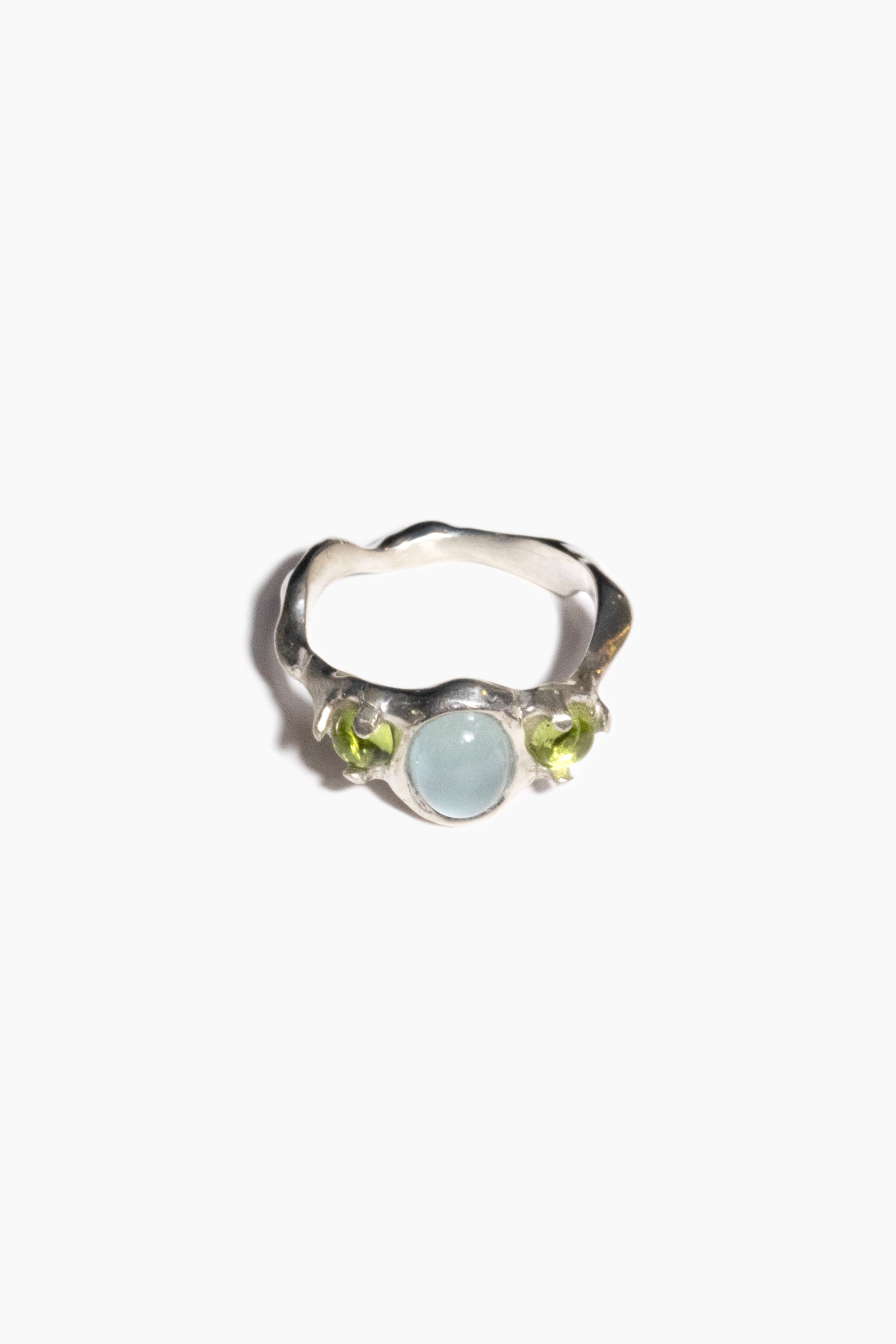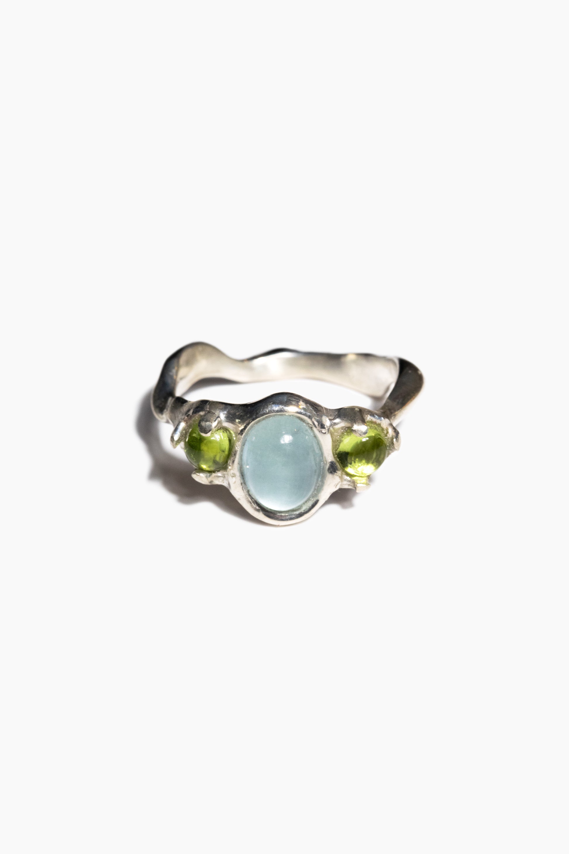 Cast in 925 sterling silver and adorned with aquamarine and peridot, the Fairy ring brings back those memories. It reminds me of peaceful moments spent by the lake, sitting on the grass, as if in the quiet company of those gentle little fairies.